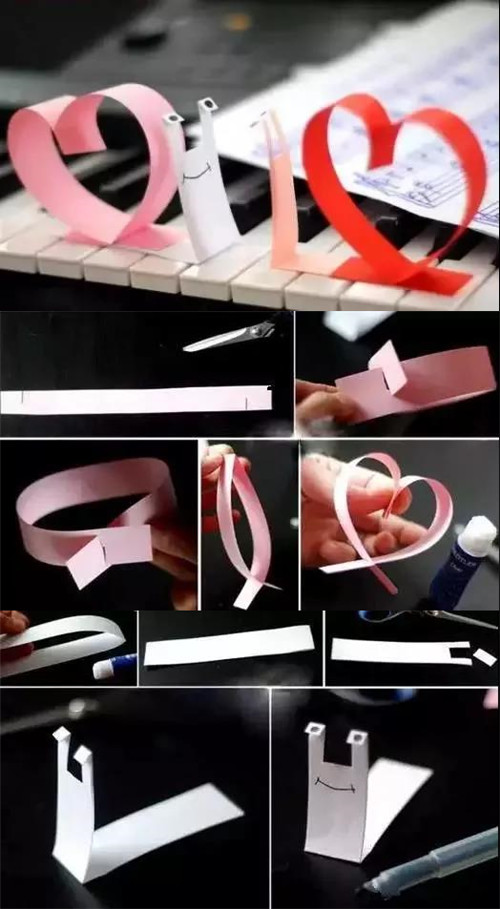 方法如下:老师可以先带幼儿做“心形”和“蜗牛身体”的部分,然后让幼儿自己探索“V、E”两个字母的做法,以及创造更多的造型,如下面的蝴蝶造型。
