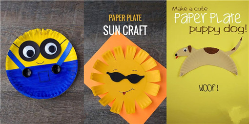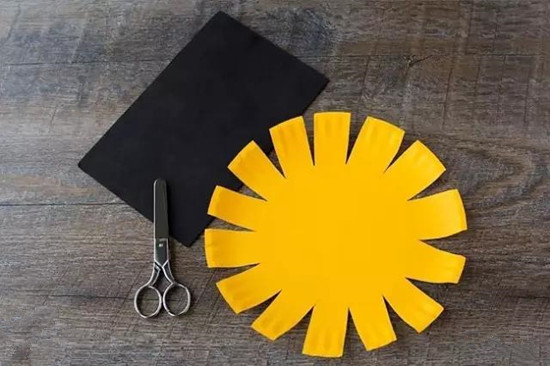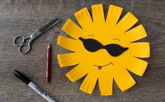 这也是非常简单的手工制作,先用颜料把蛋糕盘子涂完颜色晾干,用勾线笔画上眉毛和嘴巴,在用剪刀剪下一个个小三角形,再给太阳制作一个酷酷的眼镜,完成啦!