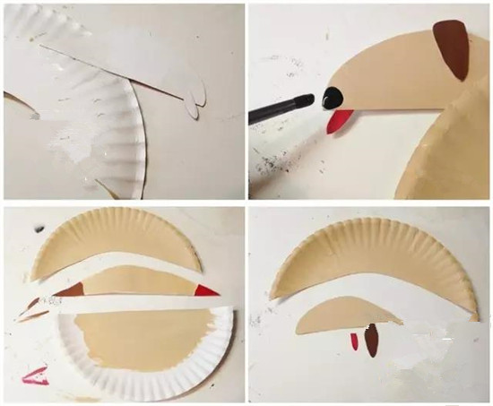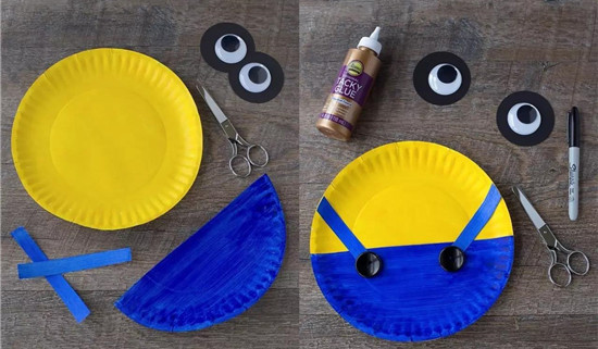 制作很简单,只需要准备一个蛋糕盘子、剪刀、颜料、手工眼睛模具、纽扣两颗。渐渐贴贴,轻松完成!