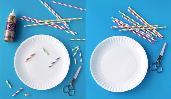彩色吸管就像是好吃的糖果一般,幼儿对他们都是非常喜爱的!用剪刀吧吸管剪成不同长度,站在纸盘上,可以有背景色也可以直接白色,很实用的,还可以供幼儿玩游戏或者当摆件!低碳又环保!