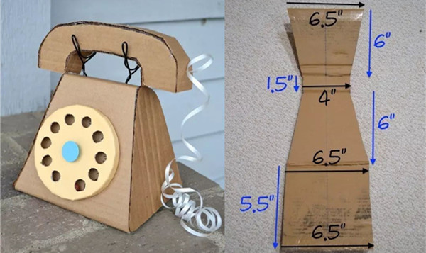用纸板做一个如下形状的听筒。为了防止调皮的孩子把听筒扔的到处都是,最好在下面加一条绳子哦。