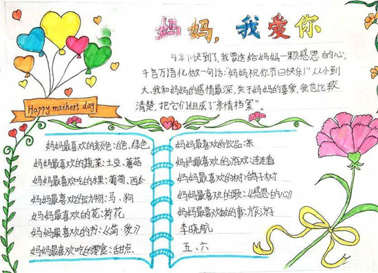 小学生母亲节手抄报祝福语和内容大全