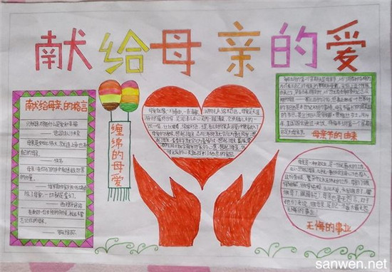 5月13日一个全世界母亲专属的节日,我们伴随着母亲的爱抚,渐渐长大成人,希望天下儿女都不要忘记给自己最伟大、最好的妈妈说一声母亲节快乐!世上只有妈妈好,很多幼儿园小学一些关于母亲节的主题手抄报已经在火热的进行中,为了让小学生们找到更好的母亲节手抄报内容资料,下面就提供了很多的母亲节手抄报内容大全给大家,将自己这份独特的制作送给妈妈,领悟感恩、感谢!而手抄报上的内容不一,但是孩子们千万不要忘记一定要写上母亲节祝福语,祝福母亲、感谢母亲!