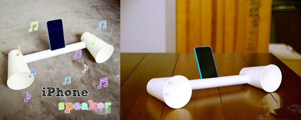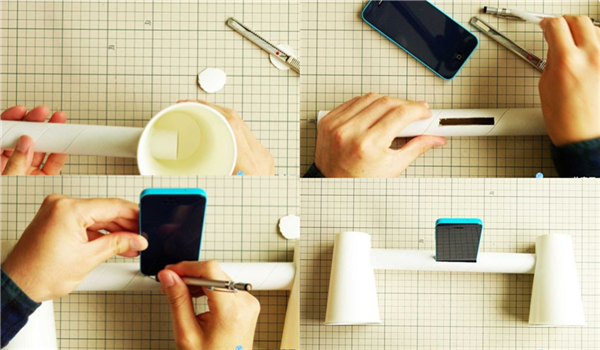 拿出手机,在纸筒的中间画出手机的大小,开一个长方形的口子,将手机插在进纸筒里,这样听歌声音倍儿大倍儿立体!学会了吗?