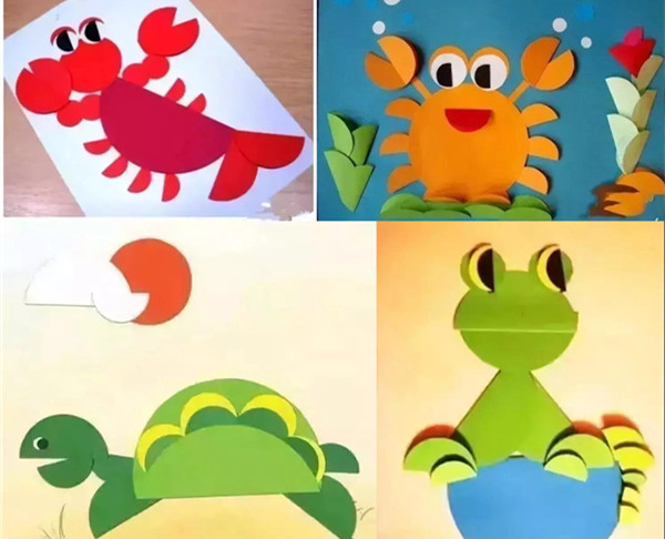 红红的太阳挂天边,呼哧呼哧的小乌龟真口渴啊,下水玩玩吧~哇塞,还有小恐龙呢!小龙虾和螃蟹也很好做,半圆和圆形就可以轻松搞定的!