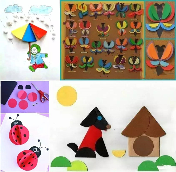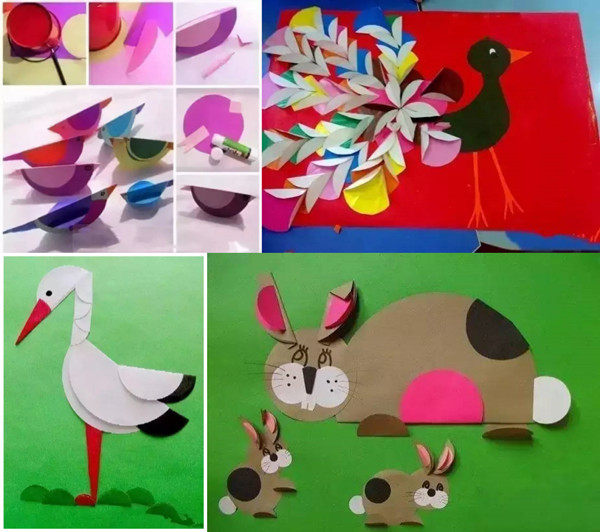 一朵朵绚丽的花~一个个可爱的小动物们都是用圆形半圆形做出来的,想不到吧,圆形和半圆形居然可以拼接出这么多花样来。有胖嘟嘟的小企鹅、肉肉的小黄鸡、还有众多的小动物们,都是用圆形和半圆形拼出来的哦!其实看上去很复杂的,但是爸爸妈妈和孩子一起做的话我相信并不是一件难事!