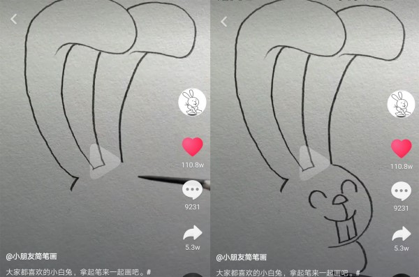 抖音里面有一个账号是专门教画简笔画的,账号名字就叫做“小朋友简笔画”,全都是小朋友们以及爱画画的常接触到的动物啦、卡通人物和小动物之类的。就比如今天给大家介绍的这个小兔子简笔画,在这位作者的笔下那是超简单超快速就完成了!具体的步骤是: