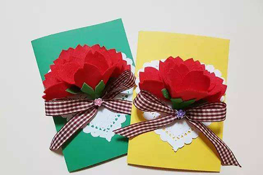 4.在每一朵的玫瑰花的底部都粘贴上双面胶,然后粘贴在卡纸上面,最后在卡纸上面进行装饰,写好新年祝福语就行了。