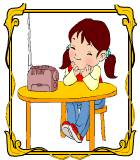 师:第一幅图画的是什么?一个小女孩在收听广播。