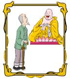 师:第四幅图画的是什么? 一个老人扶着拐杖在看着一尊大佛。