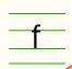 注意:“f”有点像拐棍。第一笔在上格的三分之一处起笔,写到中格第三条线停笔,第二笔横写在第二条线下边略低一点的位置上。