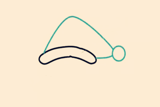第一步:用笔勾画出圣诞帽的帽檐,建议用铅笔勾画是可以擦掉修改的,对于画技熟练的人可直接用深色笔勾画。