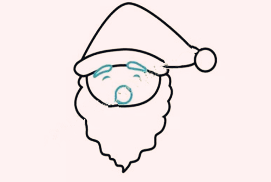 第四步:用笔勾画出圣诞老人的眉毛,眼睛,鼻子。记得画出眉开眼笑的神情哦。