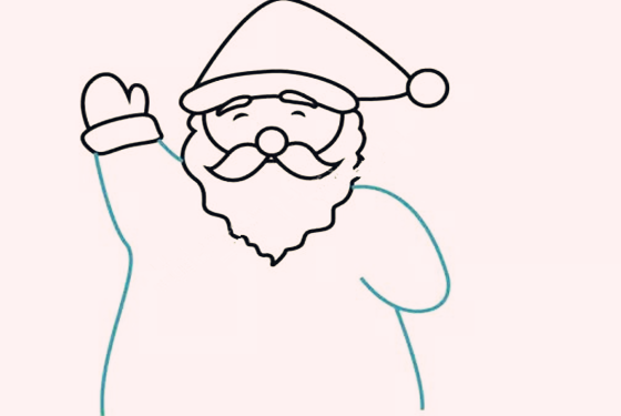 第七步:然后再给圣诞老人画上手,记得手是戴着手套的,并不是五根手指头那样的手。