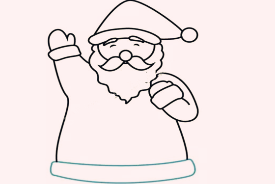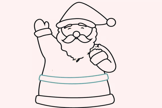 第十步:现在轮到画出圣诞老人的衣服边缘,衣服边缘比上身要多出一些,这样才显得圣诞老人肥胖的身材。