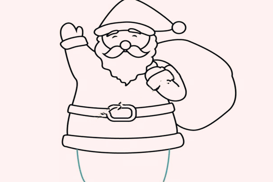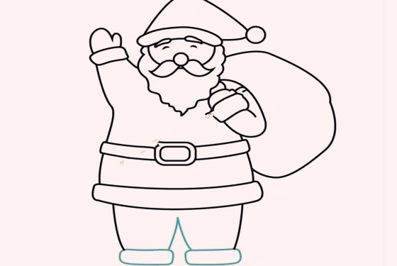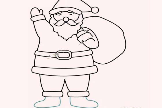 第十三步:下面再画出圣诞老人的下半身,下半身要与上半身相呼应,在轮廓上要得体。