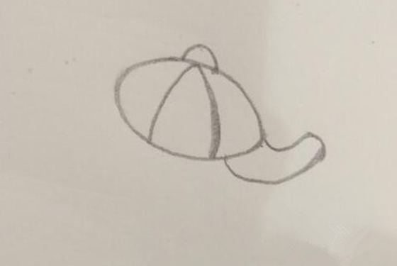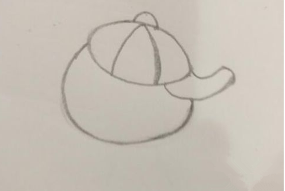 1、画帽子:先画出一个椭圆,再把椭圆平均分为3部分,帽子上方画一个小圆圈,最后画出帽檐,雪人的帽子就完成了。