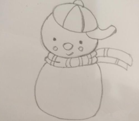5、画身体:围巾画好后是雪人的身子了,雪人的身子要画得胖乎乎的才显得可爱哦。