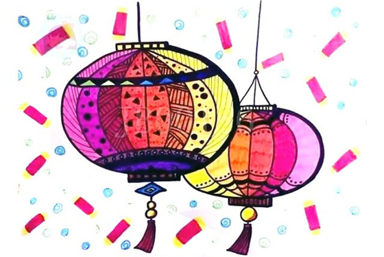 7、最后是上色,将灯笼涂上你喜欢的颜色,除了用大红大紫的颜色以外,也可以尝试其他你喜欢的颜色。