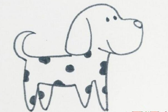 小编的话:以上就是斑点小狗的画法,是不是非常的简单明了,感兴趣的大朋友和小朋友赶快动起手学习起来。画斑点狗的时候要注意把握好四肢的尺寸和位置比例,画功不好的人可以先用铅笔勾画,然后再用彩笔着色,这样即便是画错了也方便修改。
