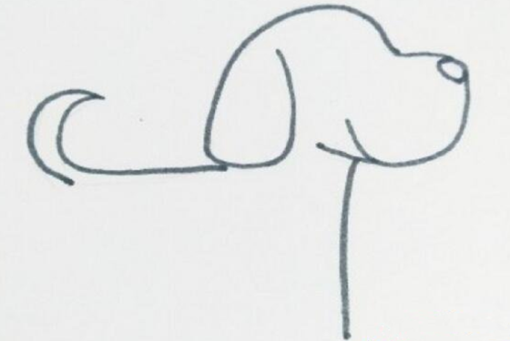 4、画小狗交背部和尾巴,按照下图示范画出小狗的背部和尾巴,要注意兼顾整体的比例。