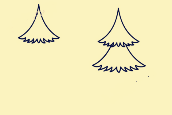 圣诞树分为好几层,每一层的画法都是差不多的,今天我们来画一个5层塔形的圣诞树。