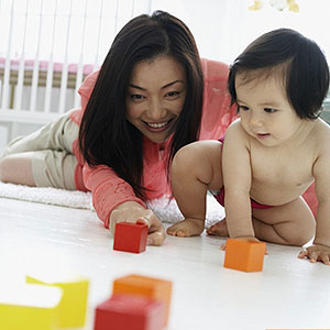 游戏:2个月以后要把玩具放在宝宝手里练习抓。要让他摸妈妈的脸,摸各种不同性质的物品,发展触觉。