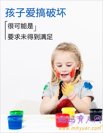 当孩子的一些要求被拒绝或是遭受到挫败后,他们会用一种破坏东西的方式来表达抗议。如果孩子的要求得不到满足,他们可能会用破坏这种极端来表现不满、伤心、失望。