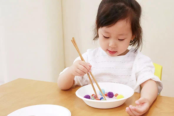 在明确宝宝拿筷子的握姿之后,可以让宝宝慢慢练习使用筷子达到熟练的目的。一开始可以训练宝宝用筷子夹大一点的好夹的食物,比如:方糕、软饼、水果等等;当宝宝熟悉筷子之后,可以尝试夹一些小一些的、圆形的、光滑的食物,锻炼宝宝对筷子的使用熟练程度。