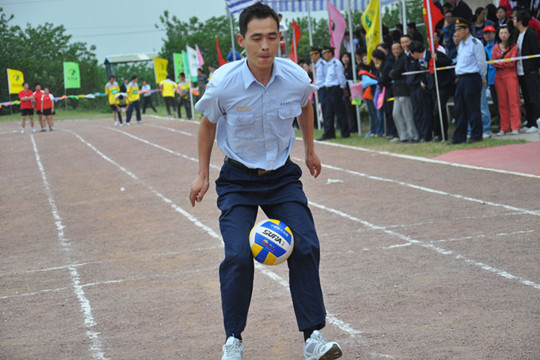 活动原则:准备小木棒和篮球,首先是要由家长用双腿来夹着篮球从起点开始蹦跶到终点,然后和孩子(孩子要现在终点等着家长哦)用两根小木棒夹着篮球回到起点,在夹球的时候不能用小木棒托着你的篮球跑哦。