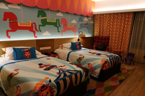 2、长隆马戏酒店客房数量700多间,分别以马戏为特色分不同的主题为房间设计,其中包括有杂技房,驯兽房,魔术房,奇趣房等。让孩子睡觉休息时也感知无比的乐趣和满足。