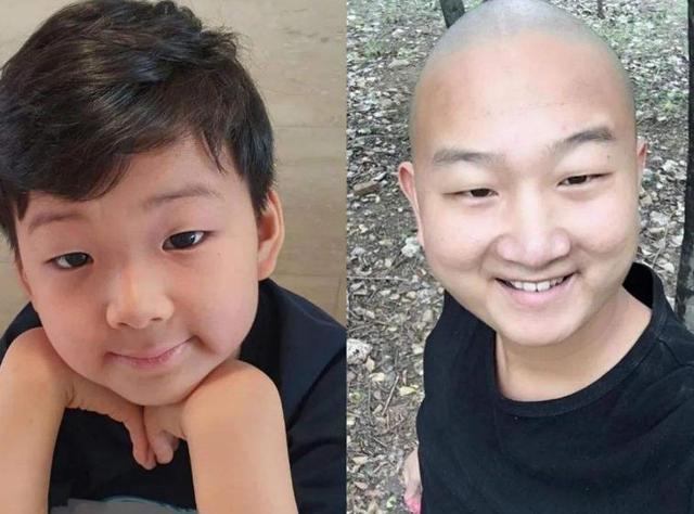 还有下面这个小男孩,小时候就是面带善意,长大后即使剃成了光头,依然是面带善意。