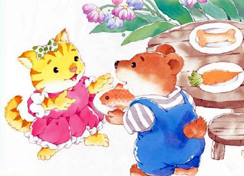 1、教师讲故事《小熊请客》,请幼儿欣赏。