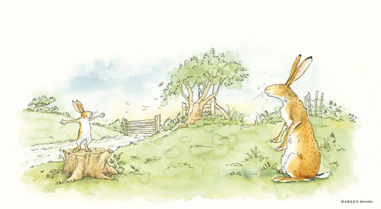 2、教师用生动的语言和夸张的动作讲述故事《猜猜我有多爱你》,请幼儿安静地倾听。