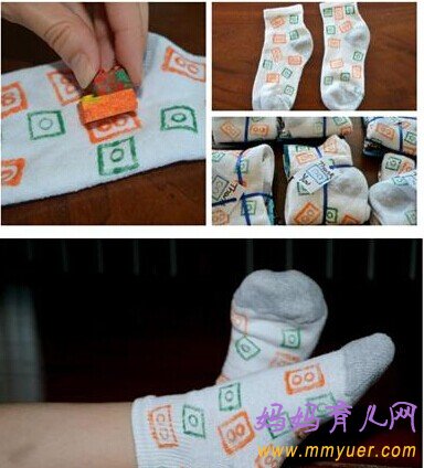 材料:1、你和宝宝喜欢的颜料,主要是要防水的颜料;2、不同形状积木各一块;3、DIY的袜子。