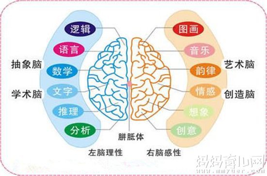 脑神经细胞在婴儿期如何布线、连结,以及父母后天给予何种的学习环境,这都会严重影响孩子脑部的架构及学习能力。专家表示,父母对于家中小宝贝的“全脑开发”,从孩子出生后就可以开始。家长在宝宝的大脑定型之前,以轻松、自然的方式,帮助孩子将左右脑的各种能力诱导出来,也就是透过游戏来开发左右脑的机能。