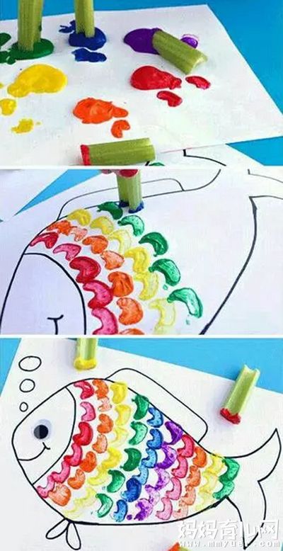 ● 鱼宝宝的鳞片居然能用芹菜画出来