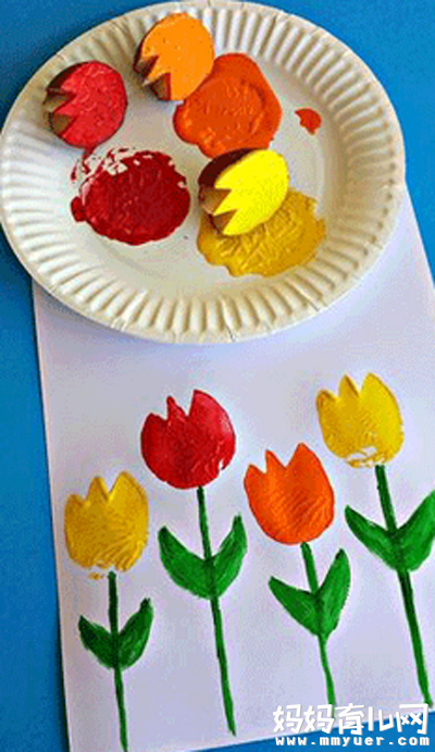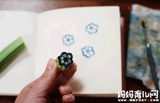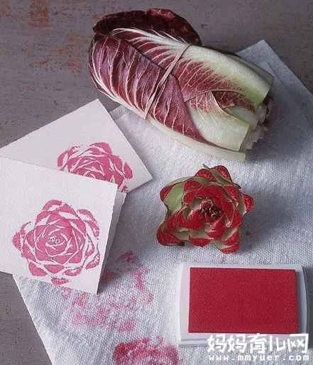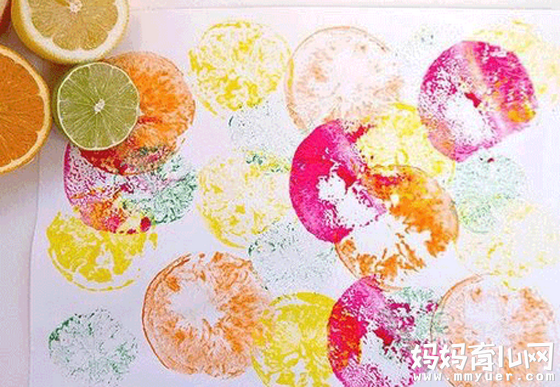 蔬菜水果家家户户都有吧,切开来,利用它们各种不同纹理的横截面,蘸上颜料,就可以做出漂亮的图画了。