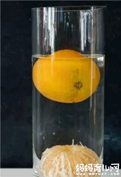 一只完整的桔子能漂在水中,但剥了皮的桔子却反而沉到了水底,你说稀奇不稀奇?