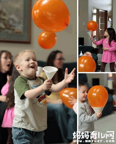 用一次性杯子做一个这样的接球工具吧,让孩子进行运球比赛,他们一定想不到跑起来的时候气球会这么淘气屡屡飞走。来,咱打一局!