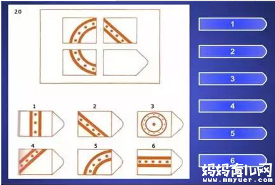 其实,还有一个方法能帮你判断孩子是否聪明,做一套IQ测试题吧,门萨俱乐部有一套专为儿童订做的智力测试题 ——门萨俱乐部的儿童智商测试模拟题:题目一共有36道,智商满分为160,需要在30分钟之内答完所有的题目。