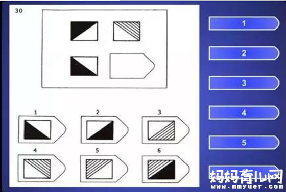 别急,我先跟您分析一下题目的类型,古人说,工欲善其事必先利器,您先热身一下,熟悉一下各类题目的解法,这样便于宝宝更容易地出成绩呢! 门萨对于孩子的智力测试题都是图形,而且是寻找图形的逻辑规律,没有什么生活常识啊、数字计算啊,所以上手会比较简单。