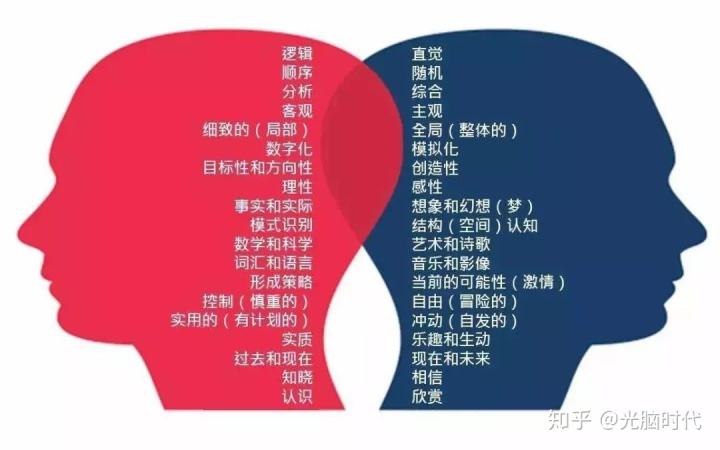 根据大脑两个半球的分工协作理论,可以看到右脑记忆知识更容易、更牢固,左脑记忆知识则困难较大。