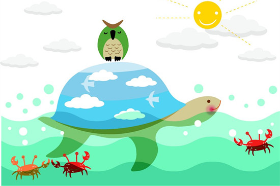 直到太阳偏了西,兔先生才看到乌龟先生的身影。乌龟先生背着成套的咖啡壶,稳稳地走过来,兔先生忙迎上去,帮他取下东西。