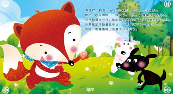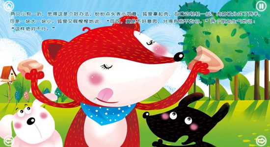 “你们不要为了一块肉而伤了和气嘛!”狐狸和善地劝解说,“要不我帮你们分肉吧,保证你们两个人得到的肉大小相同。”狐狸说。