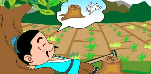 从此以后,农夫再也不耕田,整体守在大树旁,以为可以再捡到兔子。