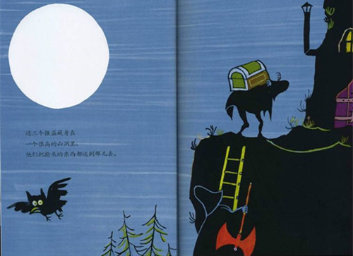 从前从前有三个很凶的强盗。他们穿着宽宽的黑斗篷,带着高高的黑帽子,出门都是躲躲闪闪的。