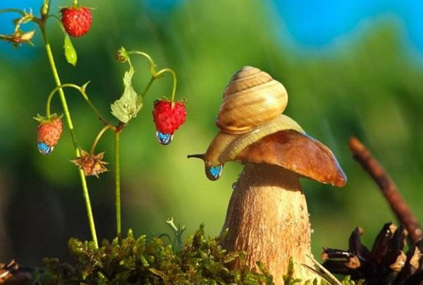“什么,我会被踩扁,真是笑话!”蜗牛听了哈哈大笑:“你没看见我这外壳多么坚硬!它是一座攻不破的堡垒,遇到紧急情况躲在里面,谁也奈何不得!不信?你好好打听,昨天一群蚂蚁围攻我,顶多只在我外壳上瞎忙活,最后也只能败兴而去,你说,我还怕谁呀?” “别开玩笑了,可不是吓唬你,这条大路车来人往络绎不绝,随便被什么碰上,你都会没命的!看!那不是一头水牛过来了,快闪开,快闪开吧!”青蛙禁不住惊叫了起来。