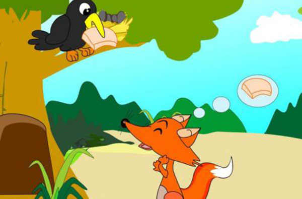 这一切都被狐狸看在眼里,于是它马上跑到树下。它是多么想得到那块肉呀。 “乌鸦,你真太高大、太漂亮了,人们都说你能成为百鸟之王。特别是你的歌声,能让百灵鸟的歌失色。但是,我却没有听到过你的歌声,恐怕百鸟之王你要做不成了。”狐狸别有用心地在树下对乌鸦说。 乌鸦多么想一展自己的歌喉,便张开自己的大嘴唱了起来。
