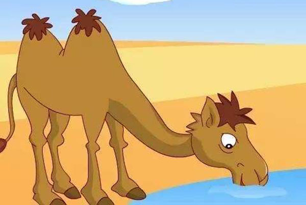 一只小骆驼来到了小溪边,在溪水中照着自己的影子。从远处跑来一匹小马,喷着响鼻说:“哈!没见过有这么丑的家伙!” 小骆驼心里很难过,跑回家对妈妈说:“都怪你把我生的太丑了,要是有小马那样的身材,别人就不会笑话我了。”妈妈说:“孩子,明天跟我去沙漠,到那时你会什么都明白了。”